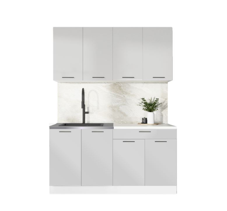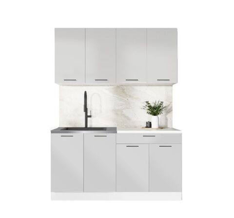 ГАРДЕН, готовая кухня, 1,6 м, столешница 80 см, фасады мдф, лайт грей/мрамор марквин