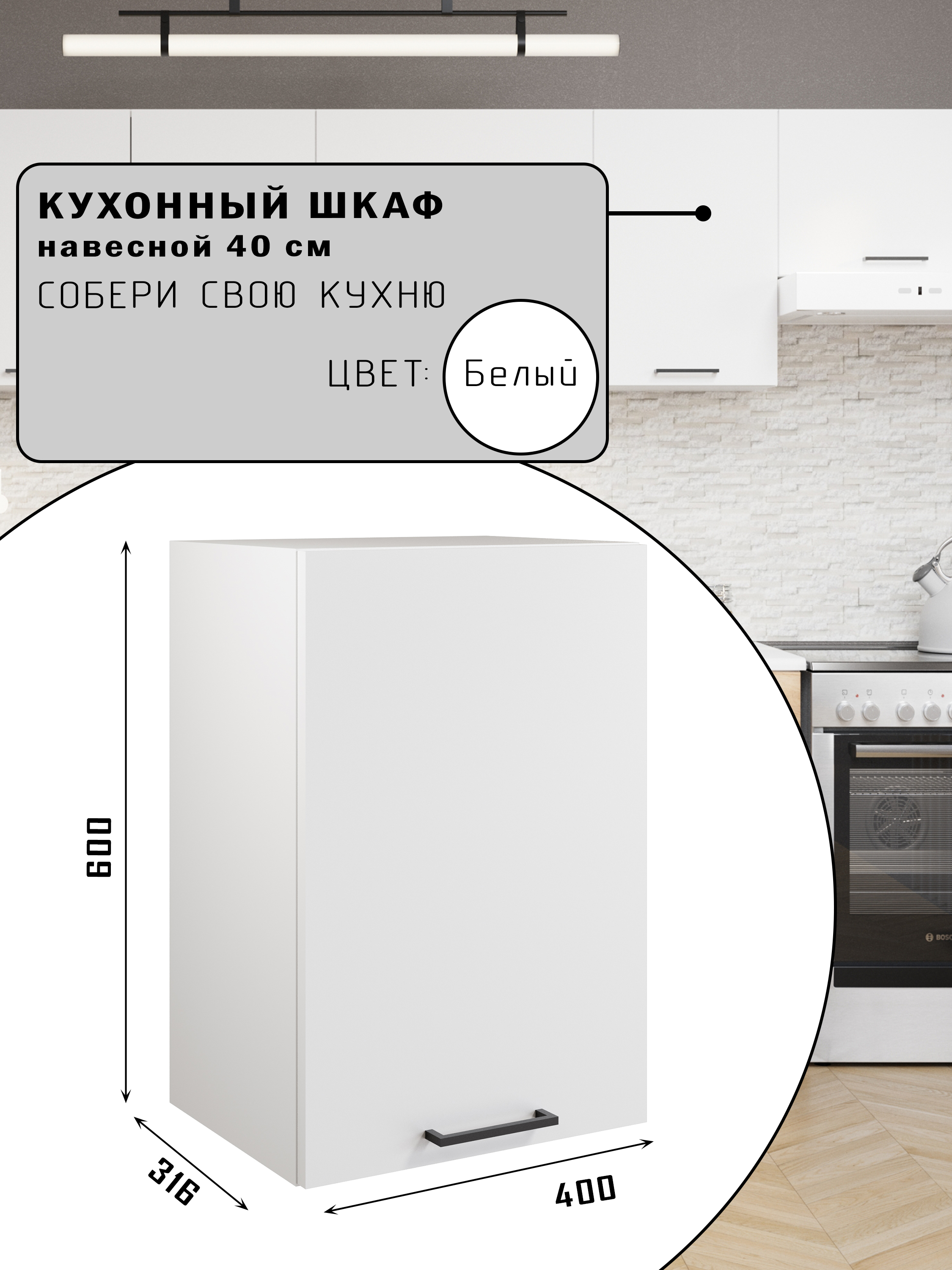 СИМПЛ, шкаф навесной, 40х60 см, белый