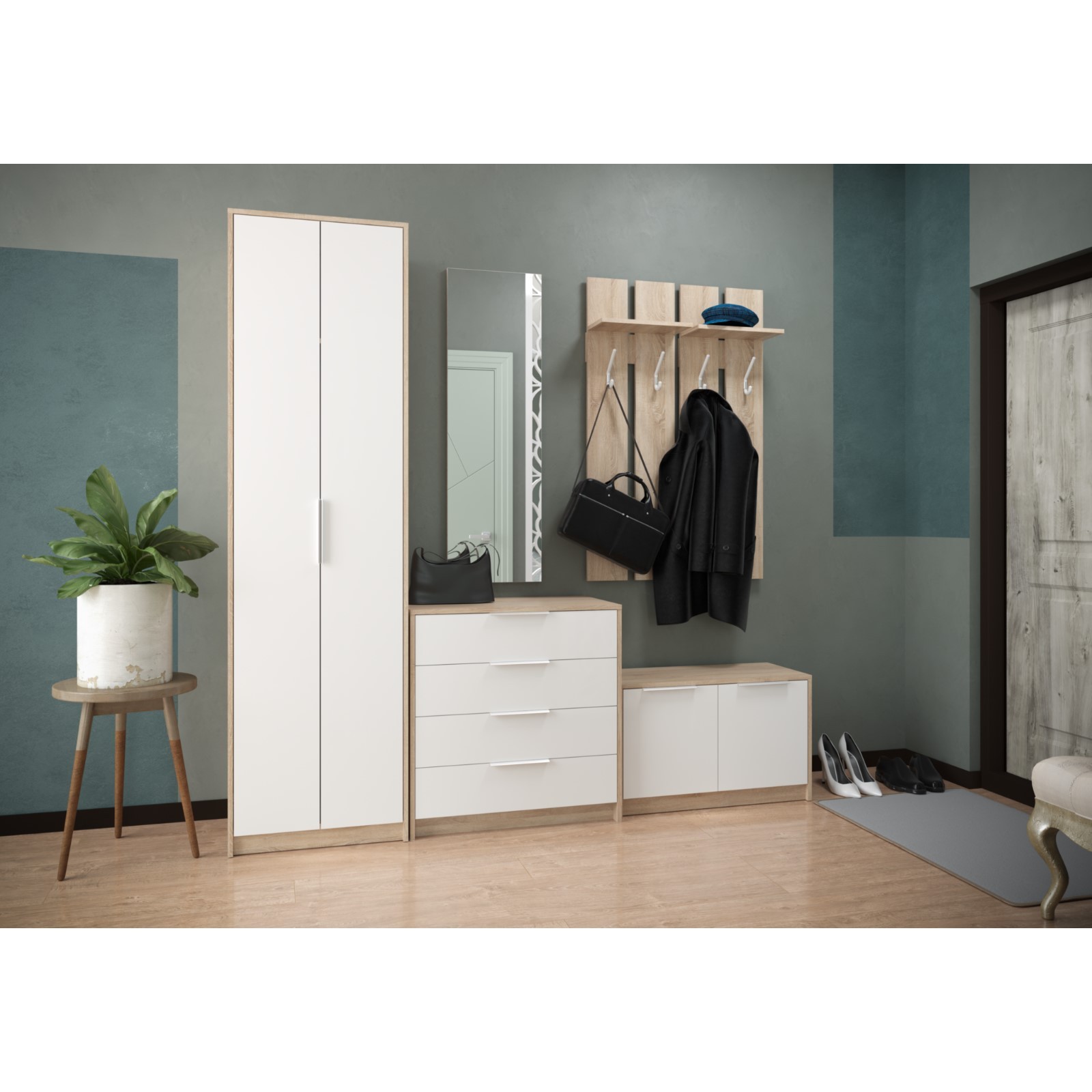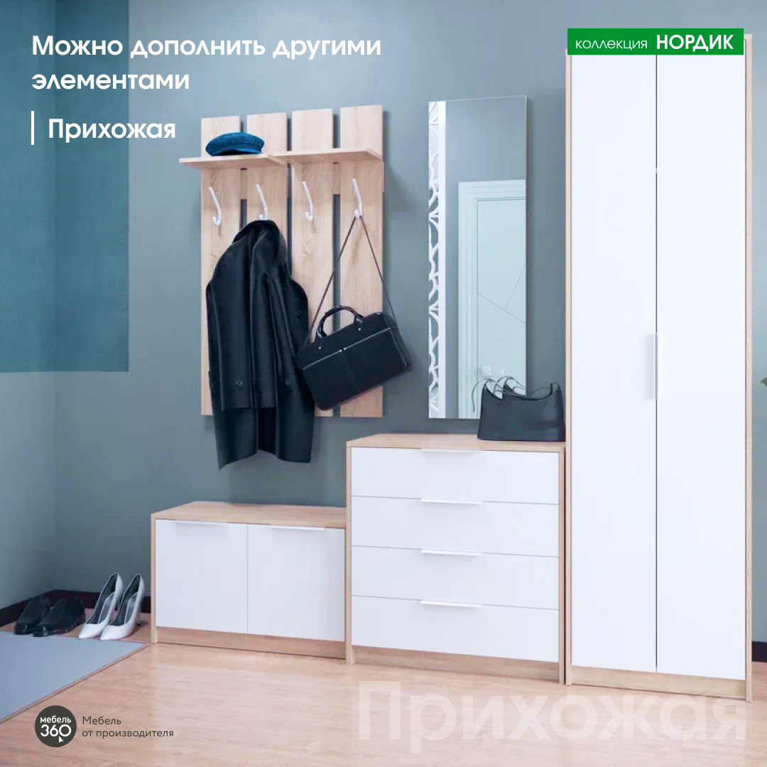 Гармонично тумба будет смотреться в сочетании с другими элементами прихожей Нордик.