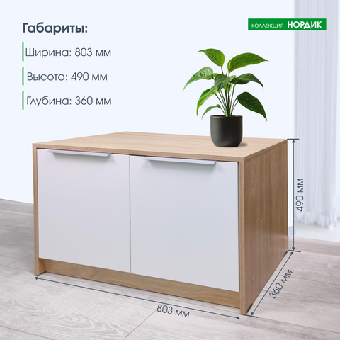 Тумба для обуви низкая Нордик выполнена в стиле минимализма. Сочетание декоров натурального дерева и белого цвета подчеркнет современный стиль Вашего интерьера.