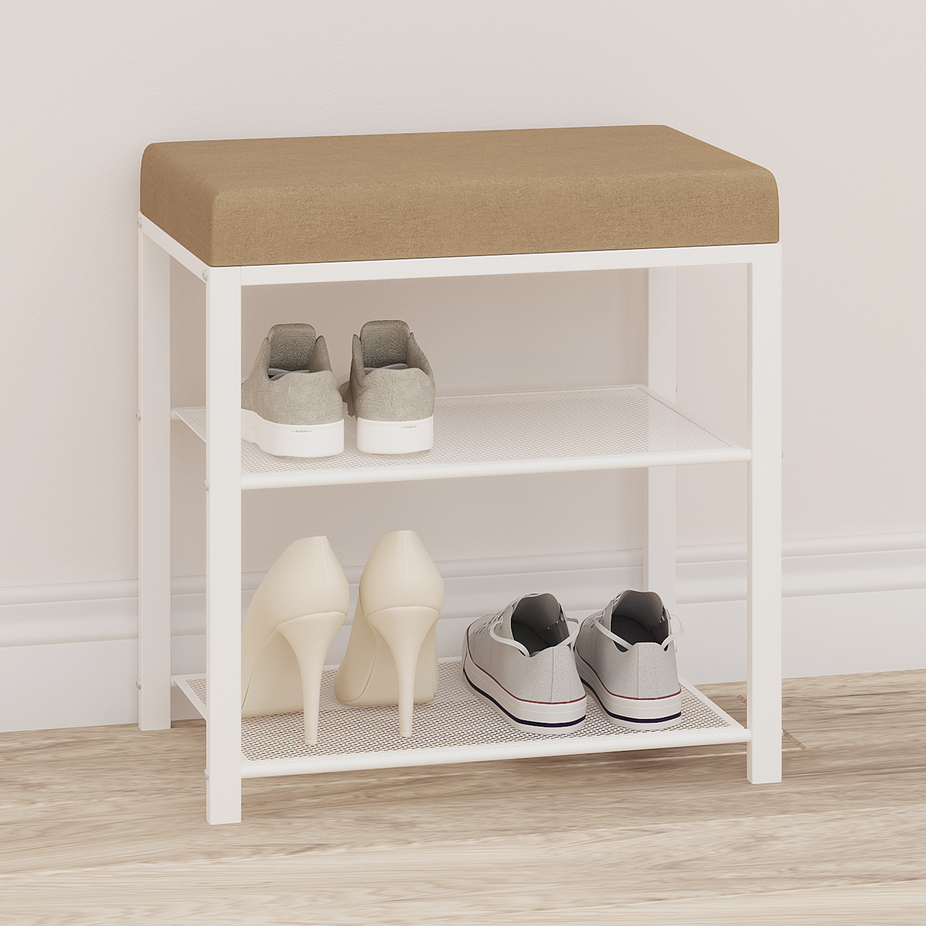 Две полки вместят до 4 пар обуви, а продуманные расстояния между ними позволят разместить как летнюю, так и зимнюю обувь.
