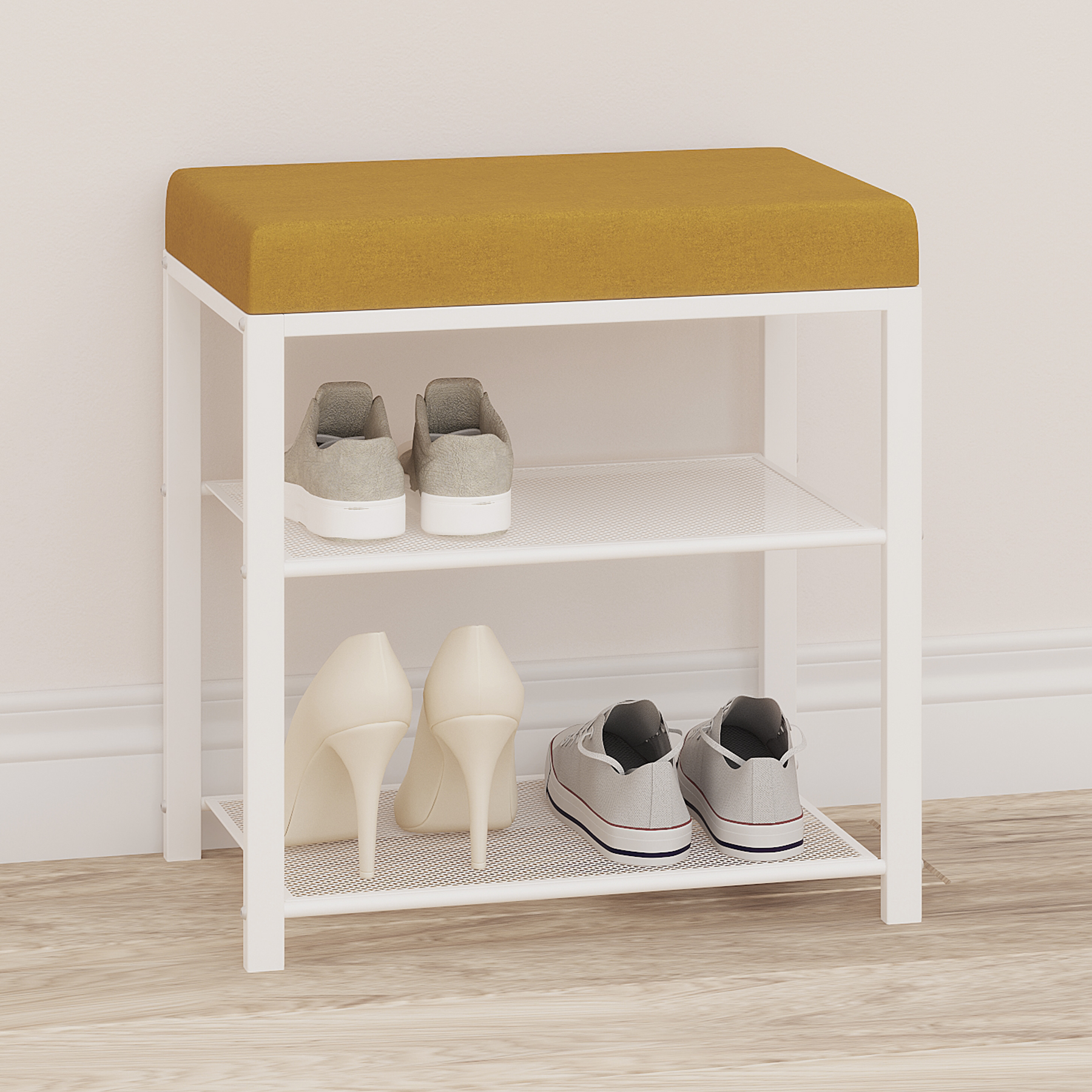 ТОРОНТО 13S, банкетка, каркас белый/сиденье горчичный, 47x30x49 см