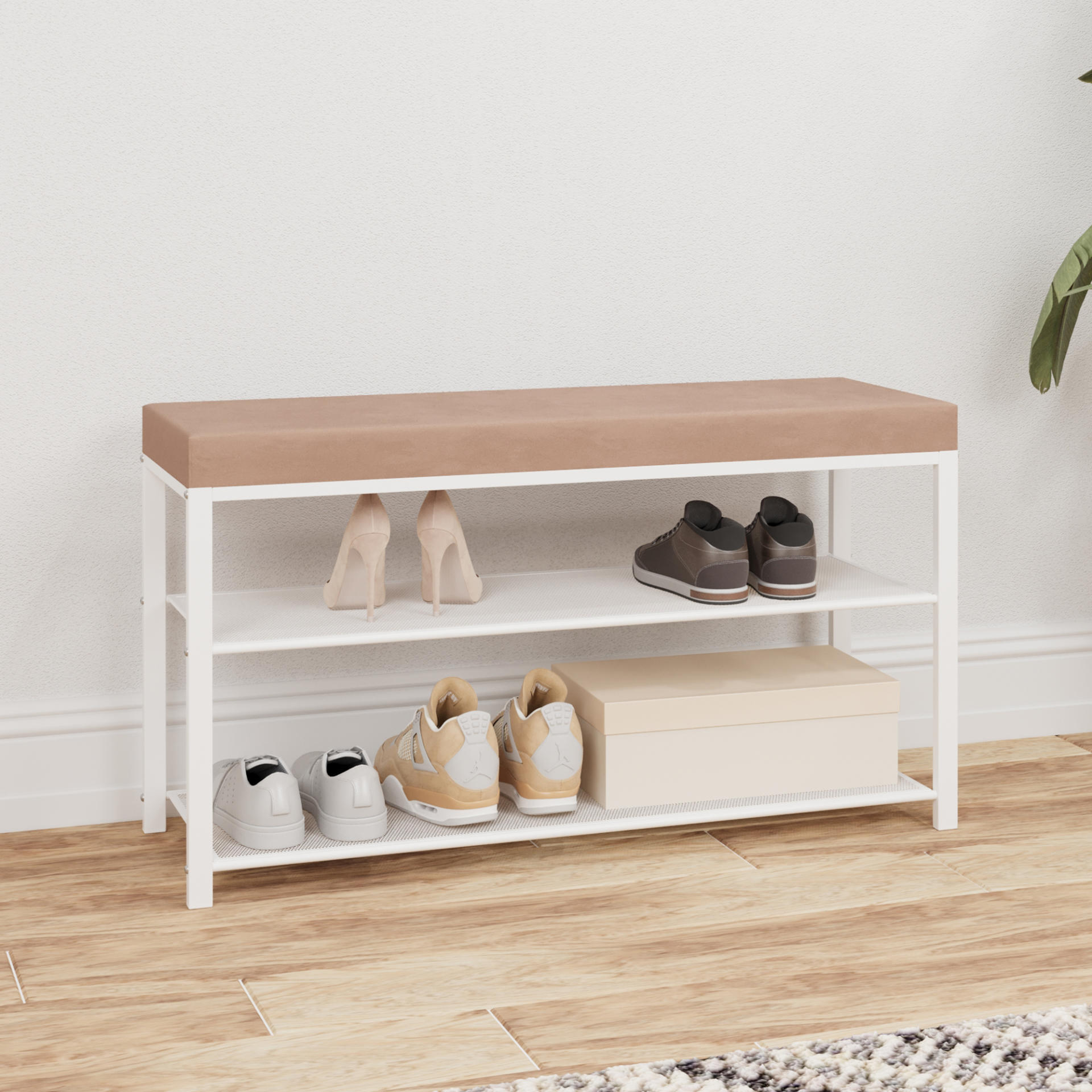 Две полки вместят до 8 пар обуви, а продуманные расстояния между ними позволят разместить как летнюю, так и зимнюю обувь.