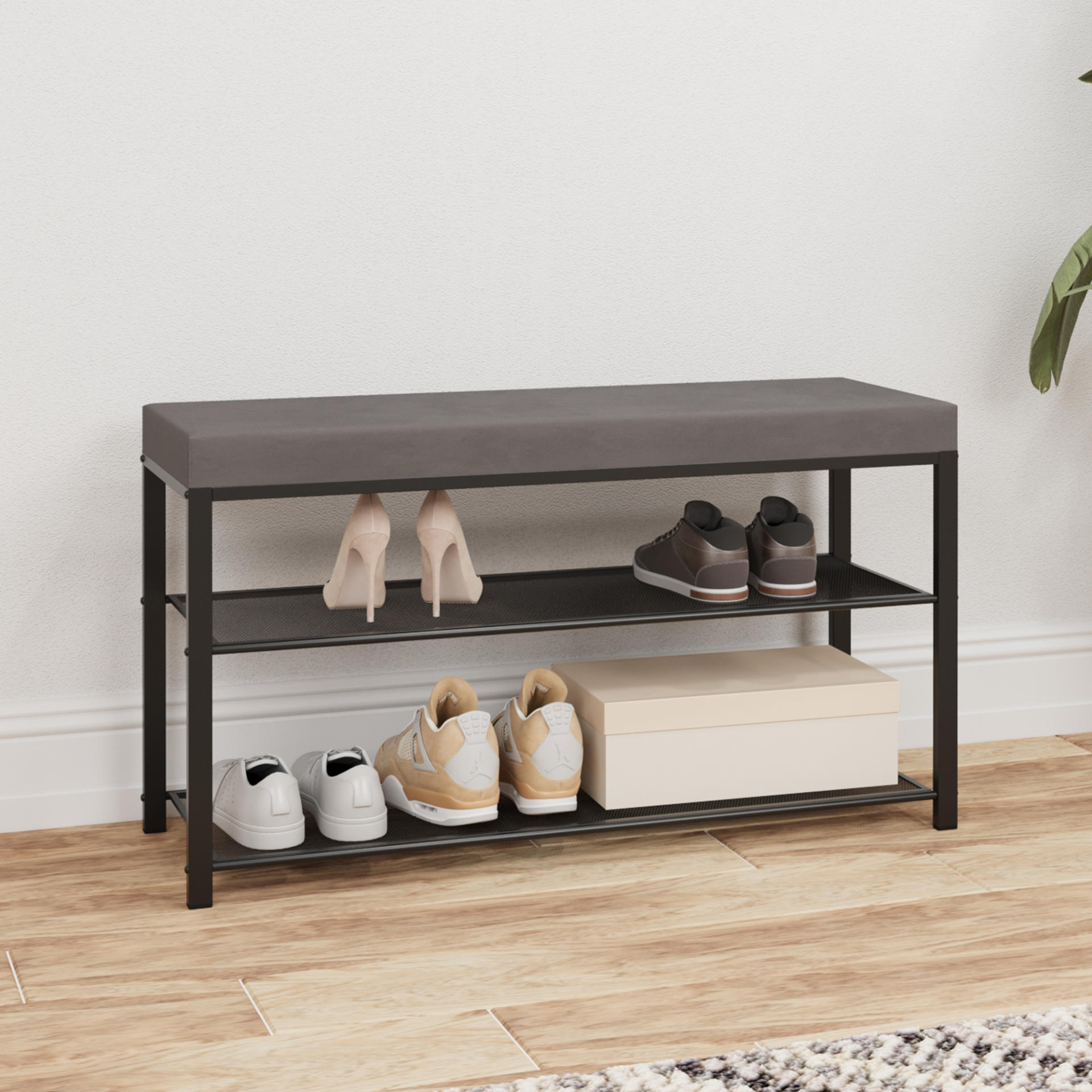 Две полки вместят до 8 пар обуви, а продуманные расстояния между ними позволят разместить как летнюю, так и зимнюю обувь.