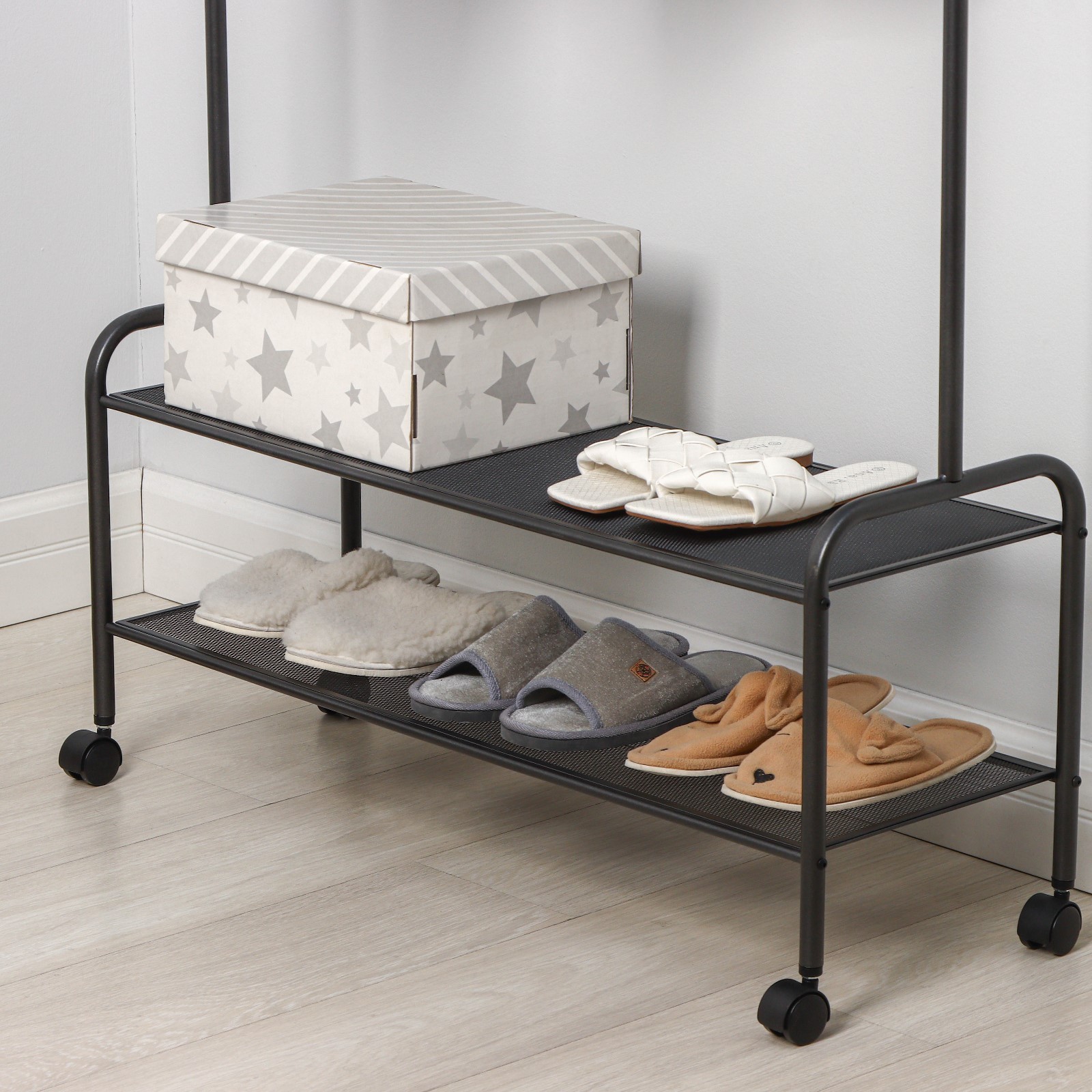 На двух сетчатых полках с лёгкостью помещается до 8 пар обуви