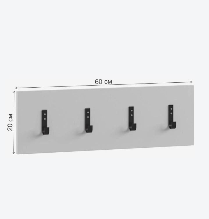 МИШЕЛЬ, вешалка настенная, 4 крючка, белый, 60х20см