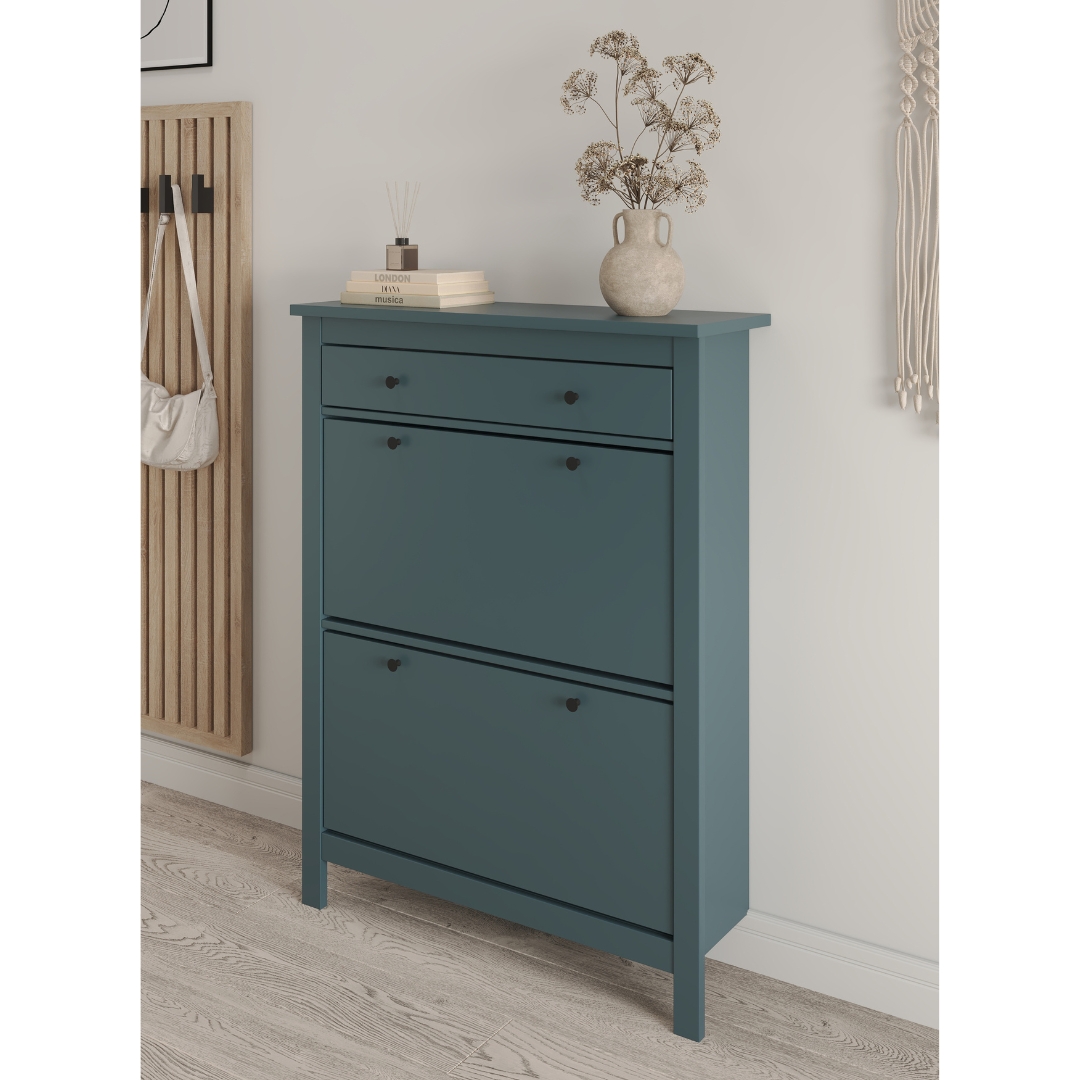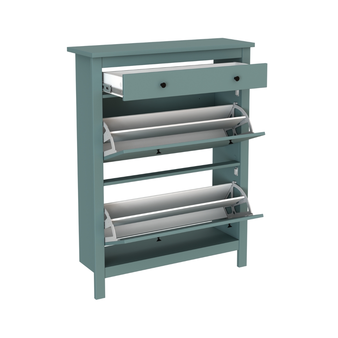 У обувницы имеется один выдвижной ящик для различный мелочей и два отсека для обуви — идеальное решение для компактной прихожей. Галошница оснащена надежными магнитными фиксаторами, которые обеспечивают безопасность и предотвращает случайное падение полки. Вы можете быть уверены, что обувь останется на своем месте.