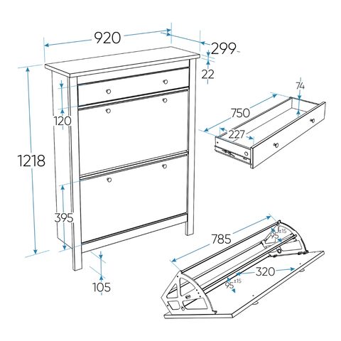 У обувницы имеется один выдвижной ящик для различный мелочей и два отсека для обуви — идеальное решение для компактной прихожей. Галошница оснащена надежными магнитными фиксаторами, которые обеспечивают безопасность и предотвращает случайное падение полки. Вы можете быть уверены, что обувь останется на своем месте.
