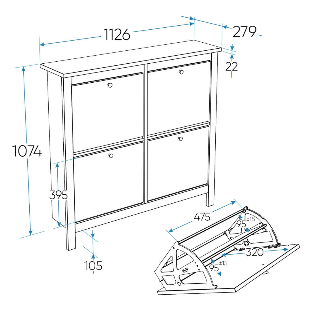 Главная особенность тумбы — четыре откидывающихся полки, на которых можно с комфортом разместить до двенадцати пар обуви. Это позволяет легко доставать и убирать обувь, сохраняя ее в идеальном состоянии. Обувница оснащена надежными магнитными фиксаторами, которые обеспечивают безопасность и предотвращает случайное падение полки. Вы можете быть уверены, что обувь останется на своем месте.