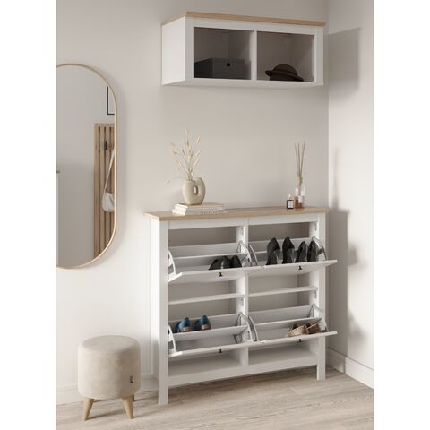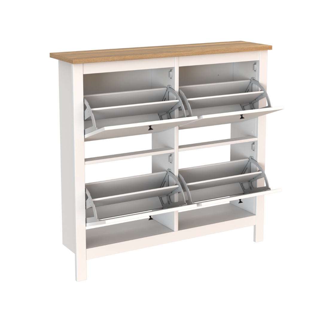 САГА, тумба для обуви, 4 двери, 113х108 см, белый/ясень