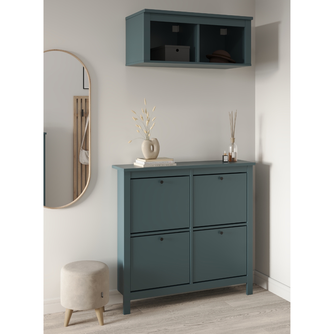 Главная особенность тумбы — четыре откидывающихся полки, на которых можно с комфортом разместить до двенадцати пар обуви. Это позволяет легко доставать и убирать обувь, сохраняя ее в идеальном состоянии. Обувница оснащена надежными магнитными фиксаторами, которые обеспечивают безопасность и предотвращает случайное падение полки. Вы можете быть уверены, что обувь останется на своем месте.