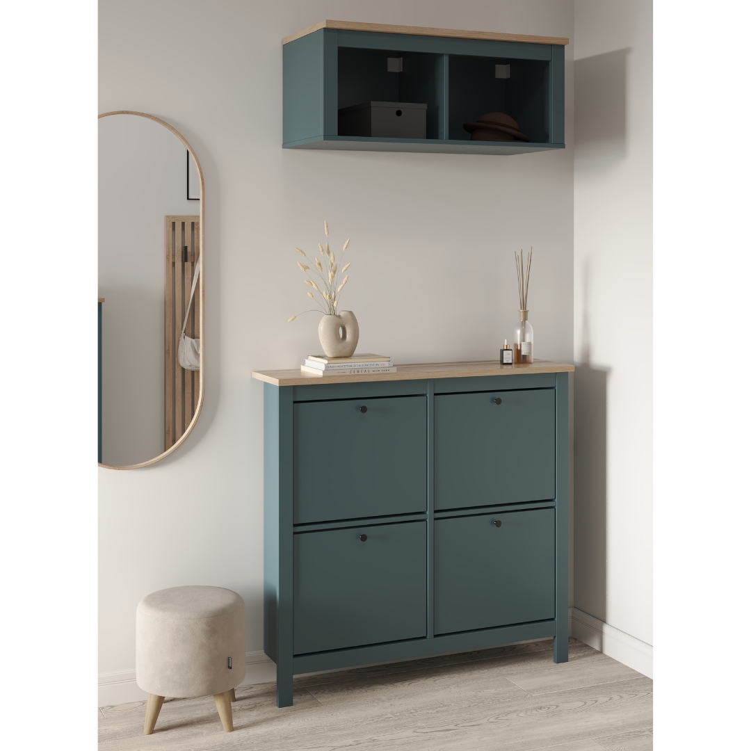 Главная особенность тумбы — четыре откидывающихся полки, на которых можно с комфортом разместить до двенадцати пар обуви. Это позволяет легко доставать и убирать обувь, сохраняя ее в идеальном состоянии. Обувница оснащена надежными магнитными фиксаторами, которые обеспечивают безопасность и предотвращает случайное падение полки. Вы можете быть уверены, что обувь останется на своем месте.
