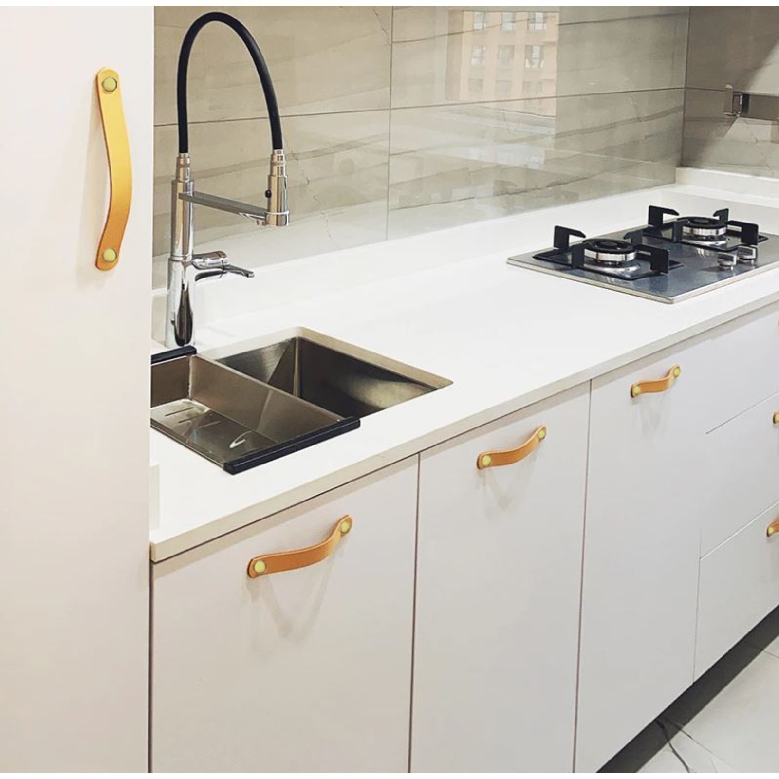Ручка скоба CAPPIO м/о 96 мм, бежевая, кожаная