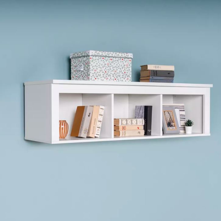 Главная особенность полки — два глубоких отделения, закрытые сверху, что защищает содержимое от пыли и придает ей аккуратный внешний вид. Здесь удобно хранить книги, декор, фотографии в рамках или любые другие мелочи, которые вы хотите держать под рукой, но в порядке.