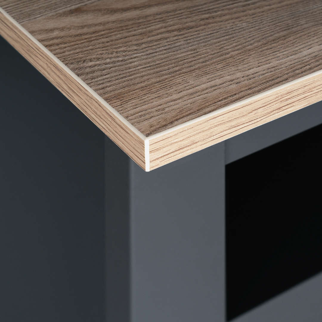 В производстве этой серии применена практичная, высококачественная ДСП класса Е0.5, обладающая прочностью и стойкостью к рассыханию и деформации в отличие от массива дерева — особенно это актуально для сухого сибирского климата и в отопительный сезон.