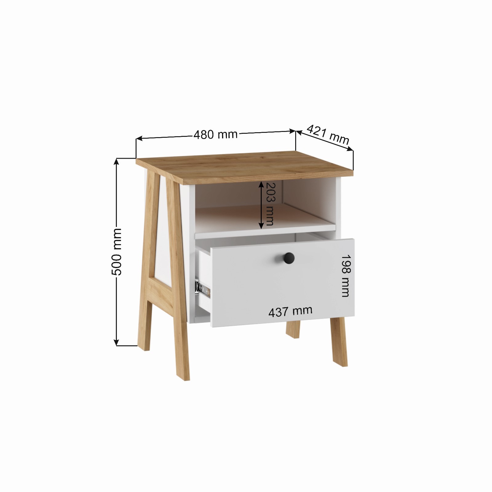 Тумба прикроватная Теодора, 480х421х515, Белый/Крафт золотой – это компактная тумба подходит для любого современного интерьера. В выдвижном ящике всегда под рукой вещи и аксессуары, а на столешницу можно поставить стильный светильник, декоративные мелочи или вазу.