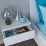 Тумба оснащена выдвижным ящиком с плавным ходом, предназначенным для удобного хранения мелочей, таких как ключи, документы и аксессуары.
