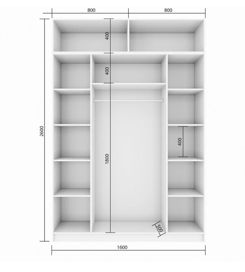 - Высокая вместимость: общая высота шкафа вместе с антресолью составляет 260 см.