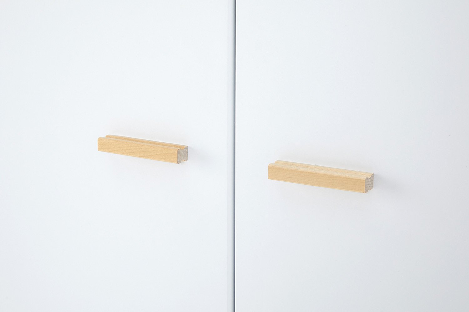 Ручки шкафа выполнены из массива березы, как и опоры. Несмотря на свои габариты и функциональность, шкаф выглядит очень легким и нарядным, высокие опоры обеспечивают пространство под шкафом, удобное как для легкой уборки, так и для дополнительного хранения вещей в стильных коробках. Отлично сочетается с комодами и тумбами "Калгари" для прихожей.