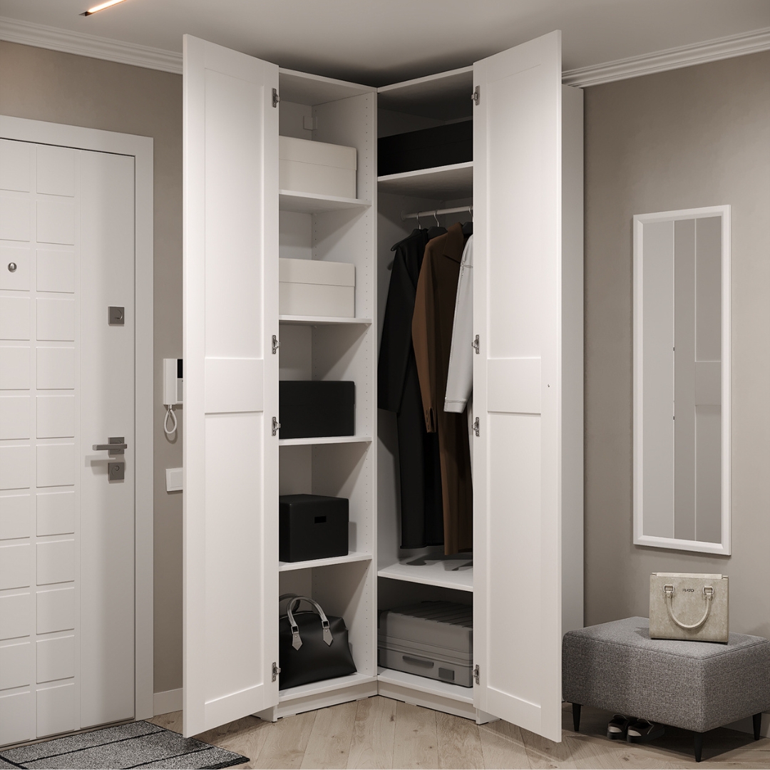 Выберите нужные каркасы, двери и наполнение — в результате вы получите гардероб, идеально подходящий для вашего дома и ваших вещей.