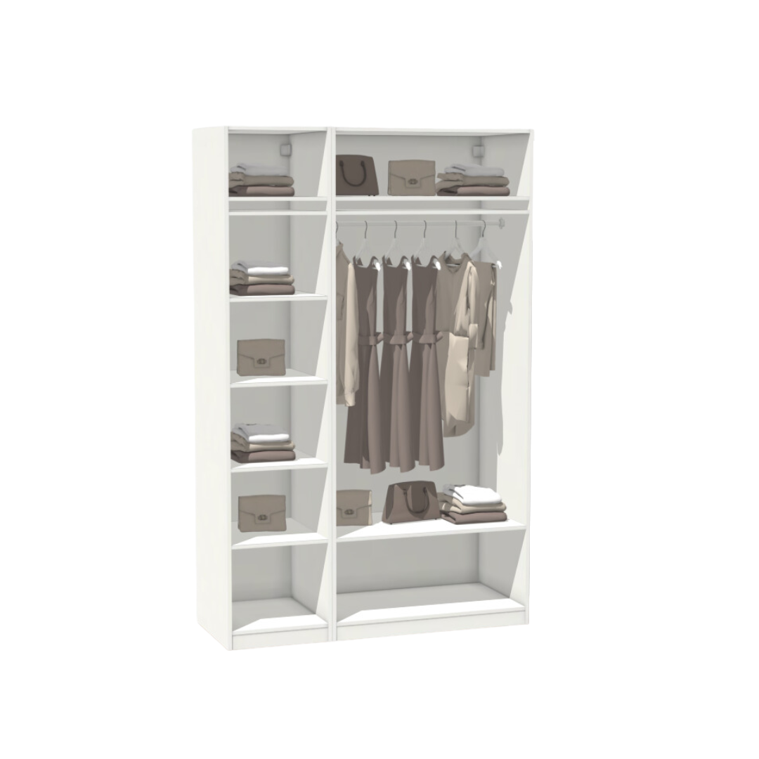 Выберите нужные каркасы, двери и наполнение — в результате вы получите гардероб, идеально подходящий для вашего дома и ваших вещей.