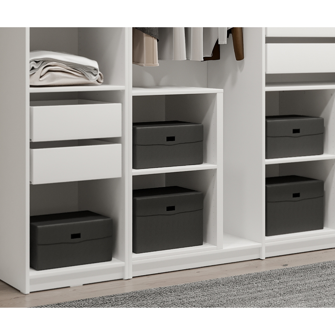Выберите нужные каркасы, двери и наполнение — в результате вы получите гардероб, идеально подходящий для вашего дома и ваших вещей.