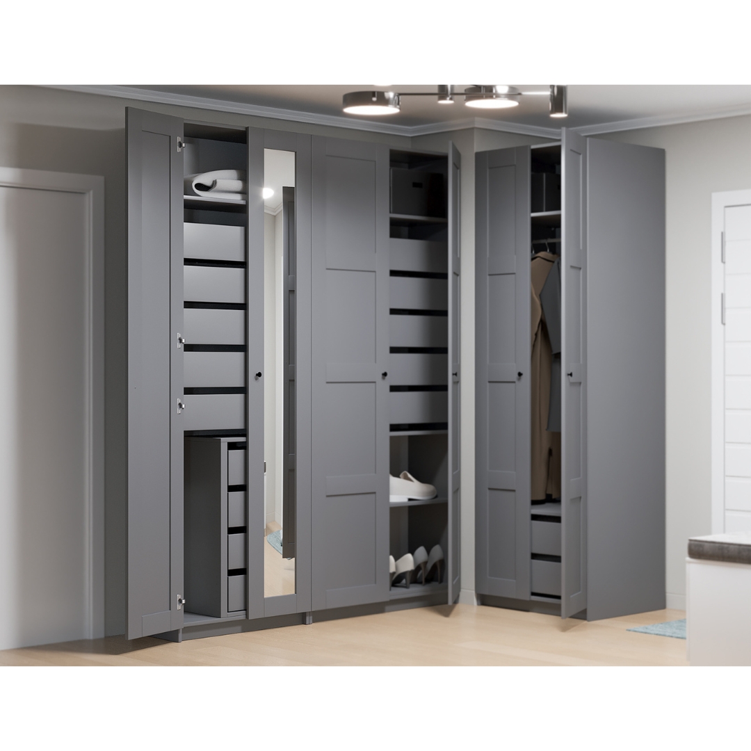 Выберите нужные каркасы, двери и наполнение — в результате вы получите гардероб, идеально подходящий для вашего дома и ваших вещей.