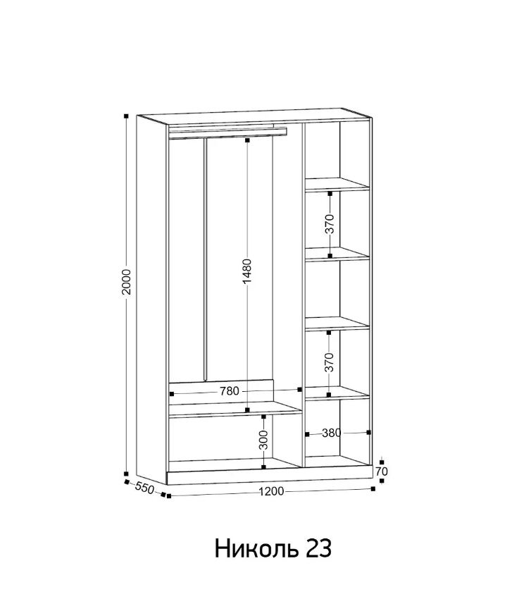 Ширина: 1200 мм | Глубина: 550 мм | Высота: 2000 мм