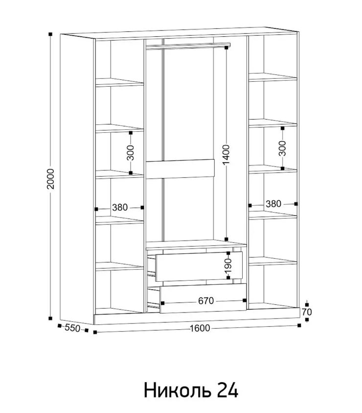 Ширина: 1600 мм | Глубина: 550 мм | Высота: 2000 мм