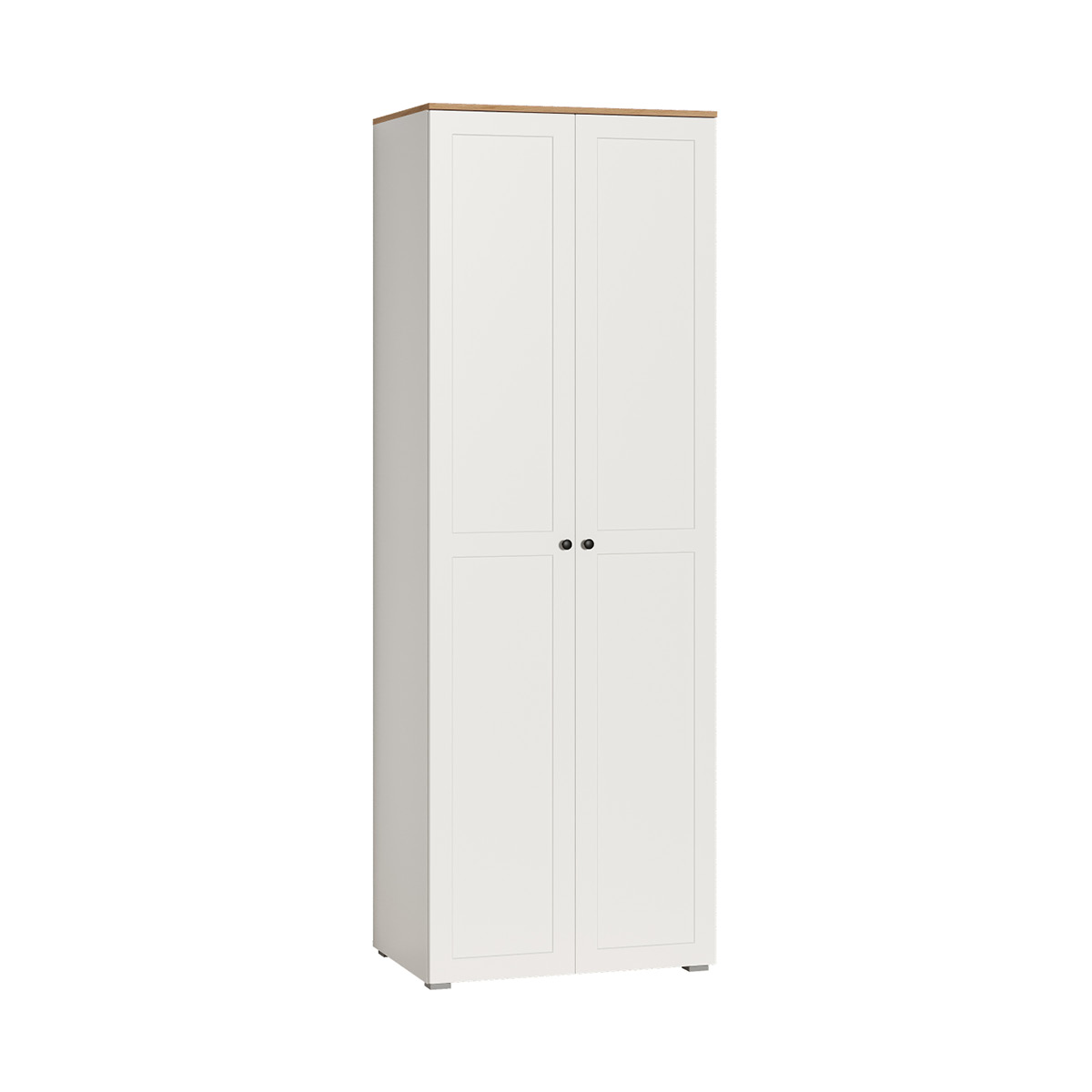 За двумя глухими дверцами шкафа находится штанга для плечиков, антресольная полка и нижняя полка.