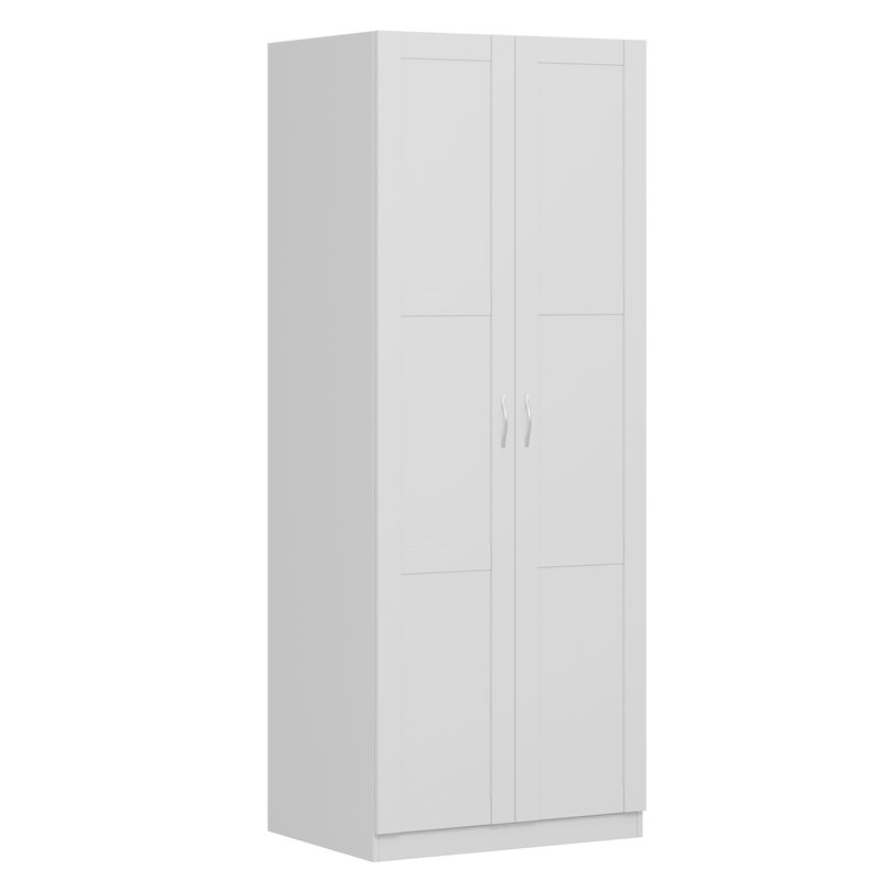 Шкаф двухдверный ПЕГАС со сборным фасадом - простой, но элегантный мебельный модуль, оснащенный полкой и штангой для одежды за двумя глухими распашными дверями. Особенность модели - собранные из планок фасады, которые интересно смотрятся и добавляют графичности в интерьер.