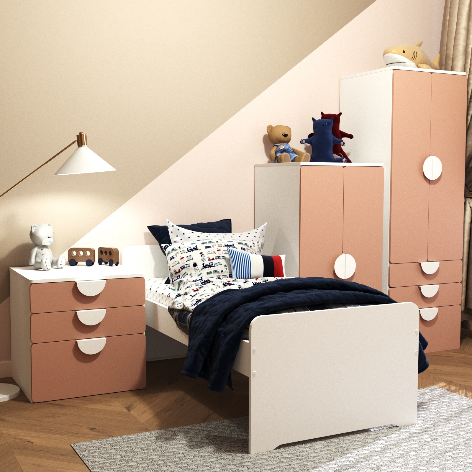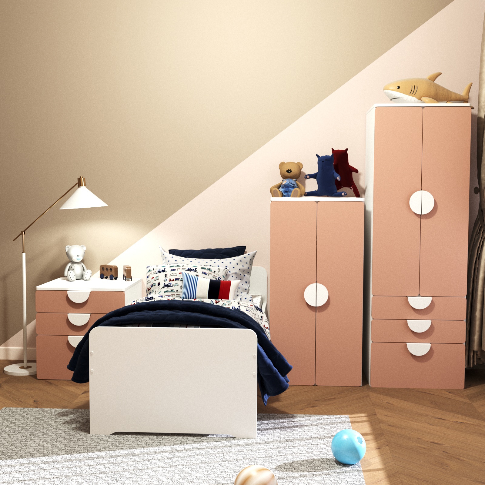 Нежная цветовая гамма, сочетающая белый корпус и розовый фасад, создает в помещении атмосферу гармонии и уюта.