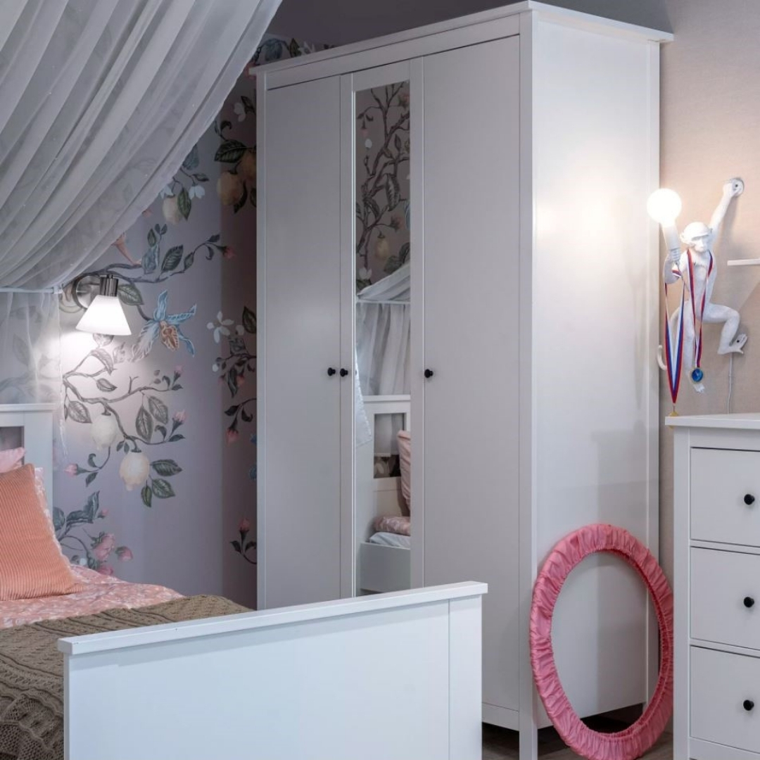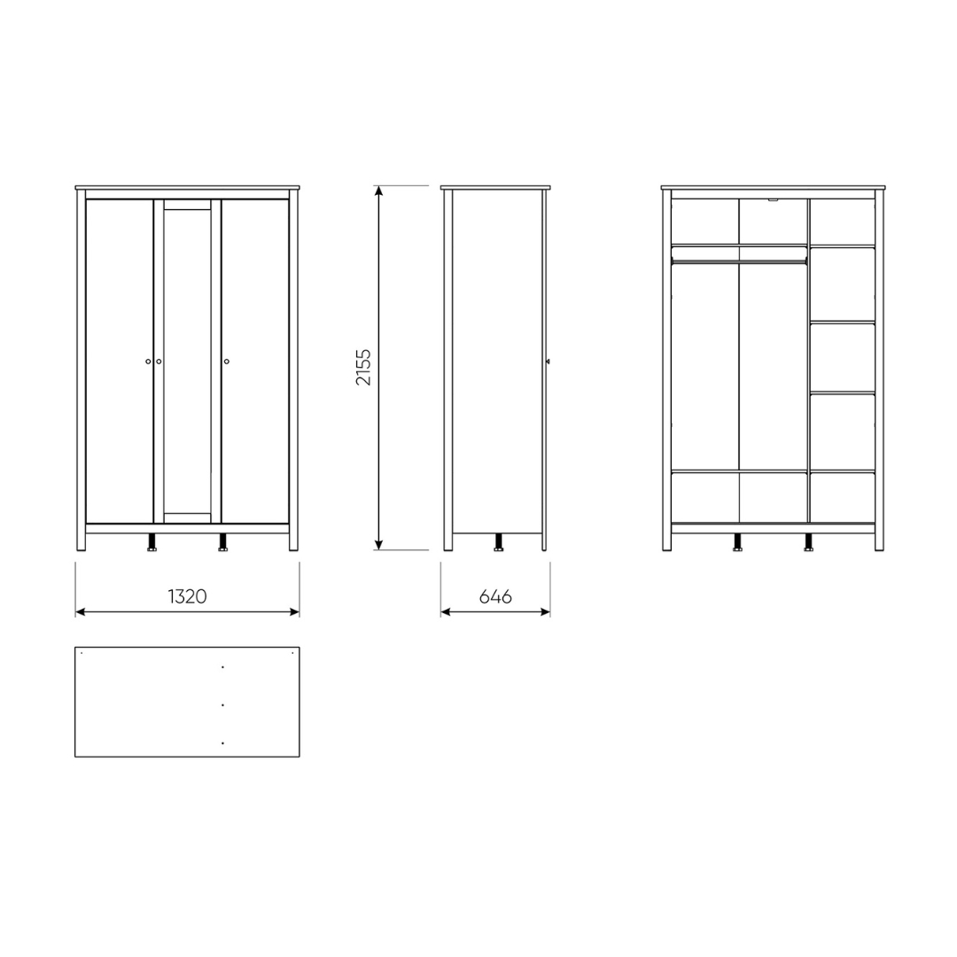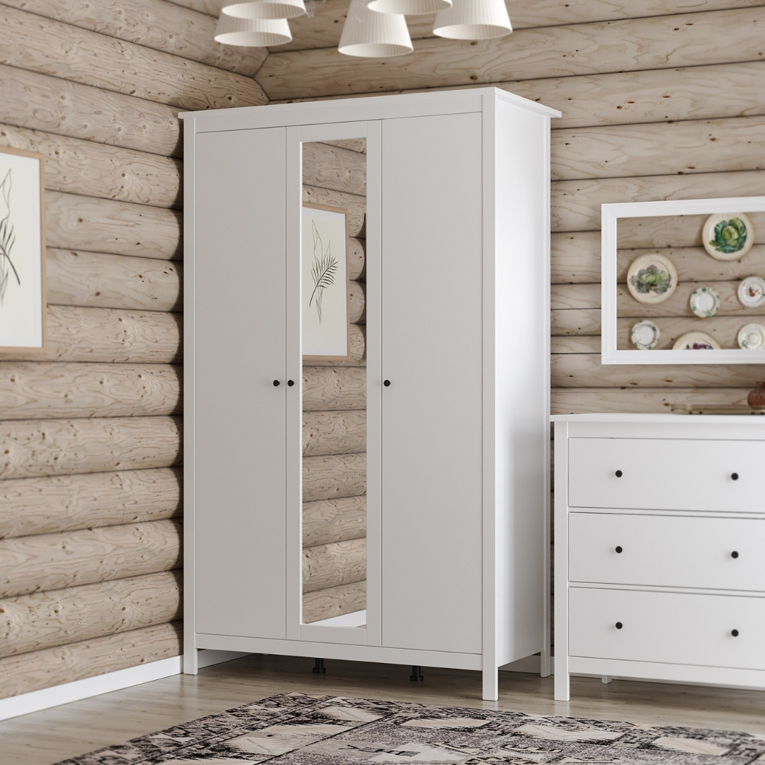 САГА, шкаф платяной 3-дверный, с зеркалом, 132х64х215 см, белый