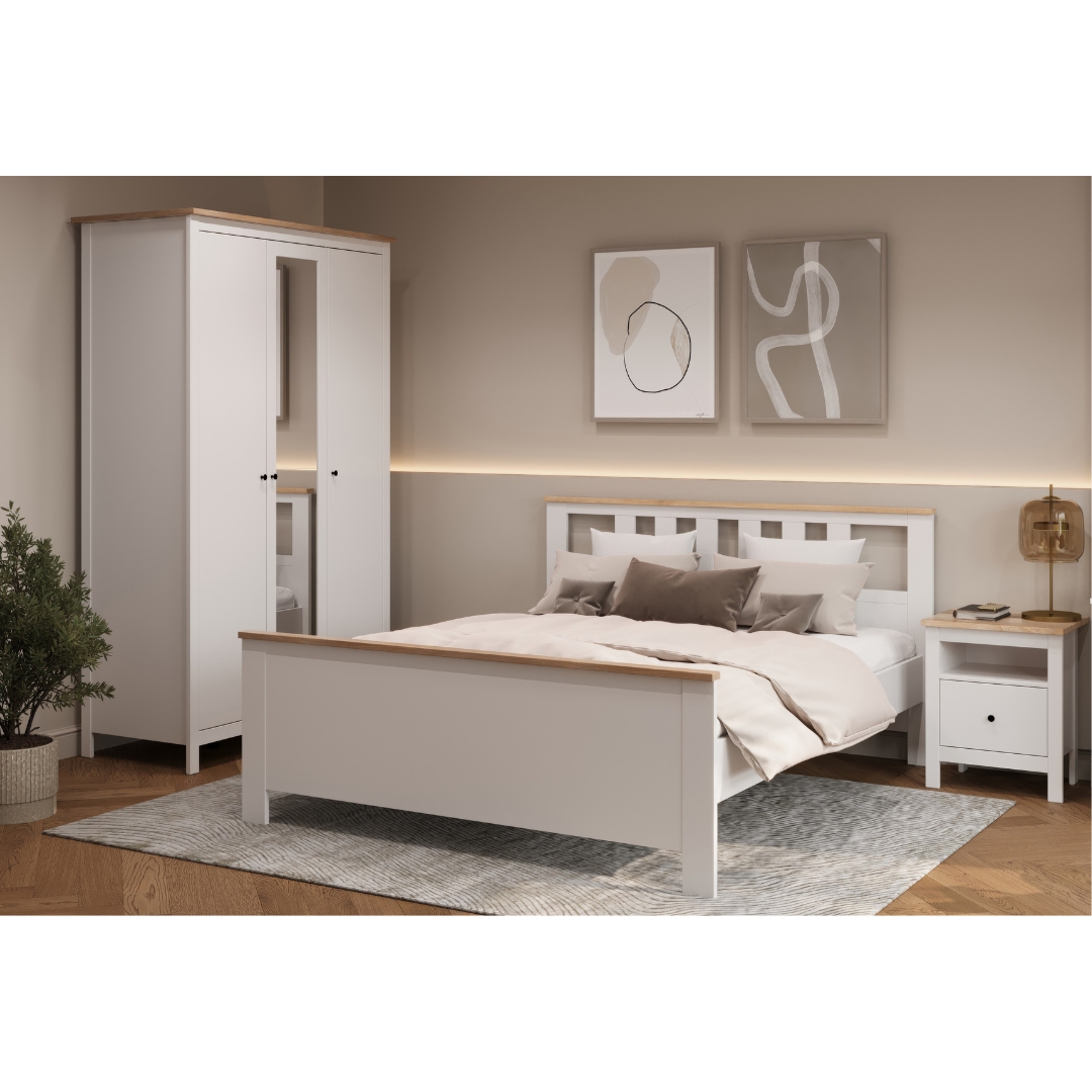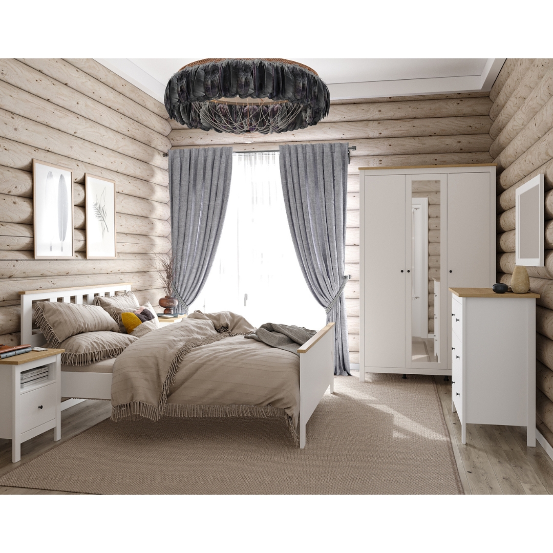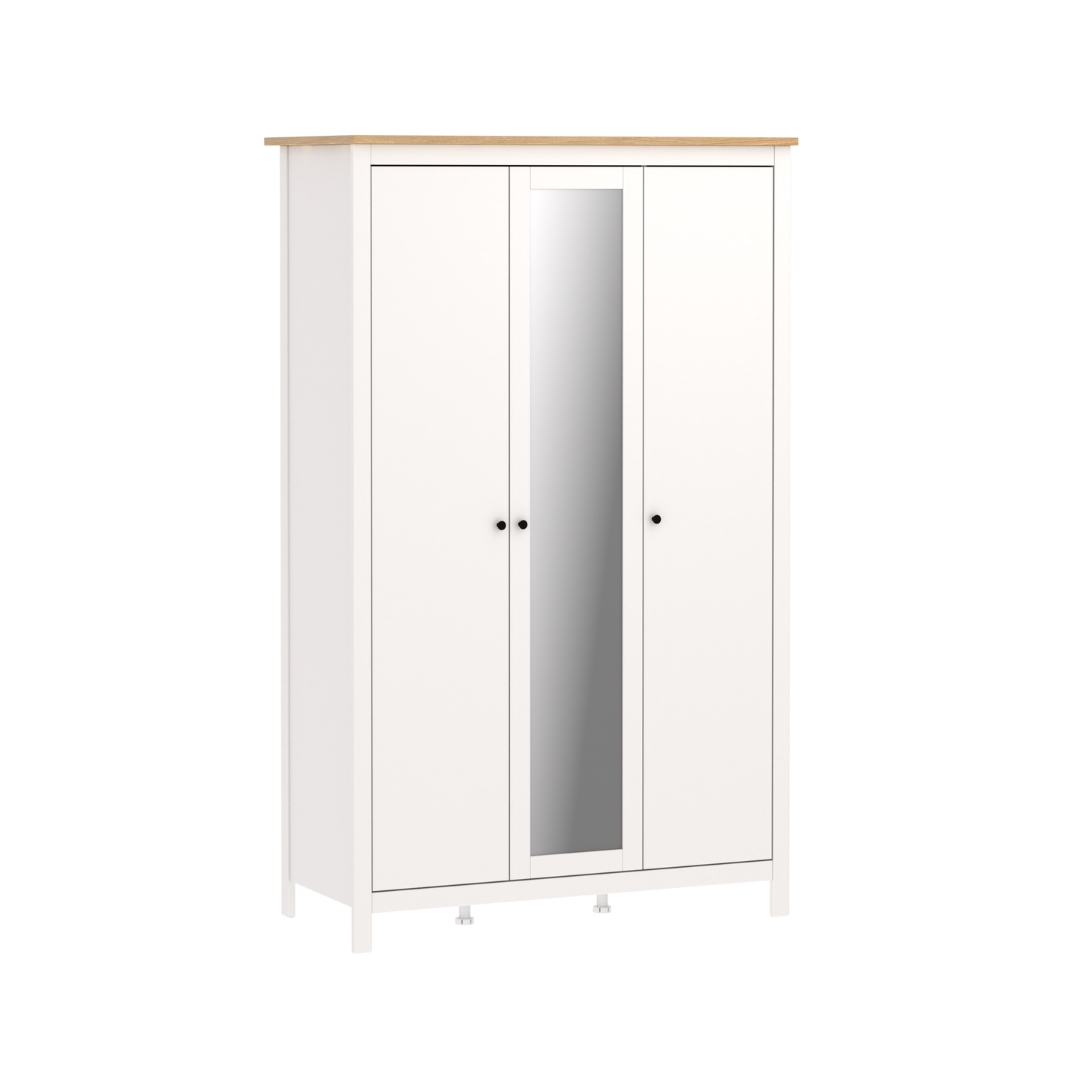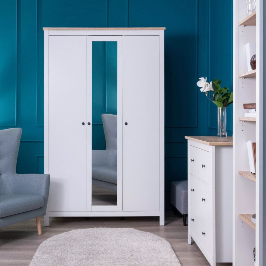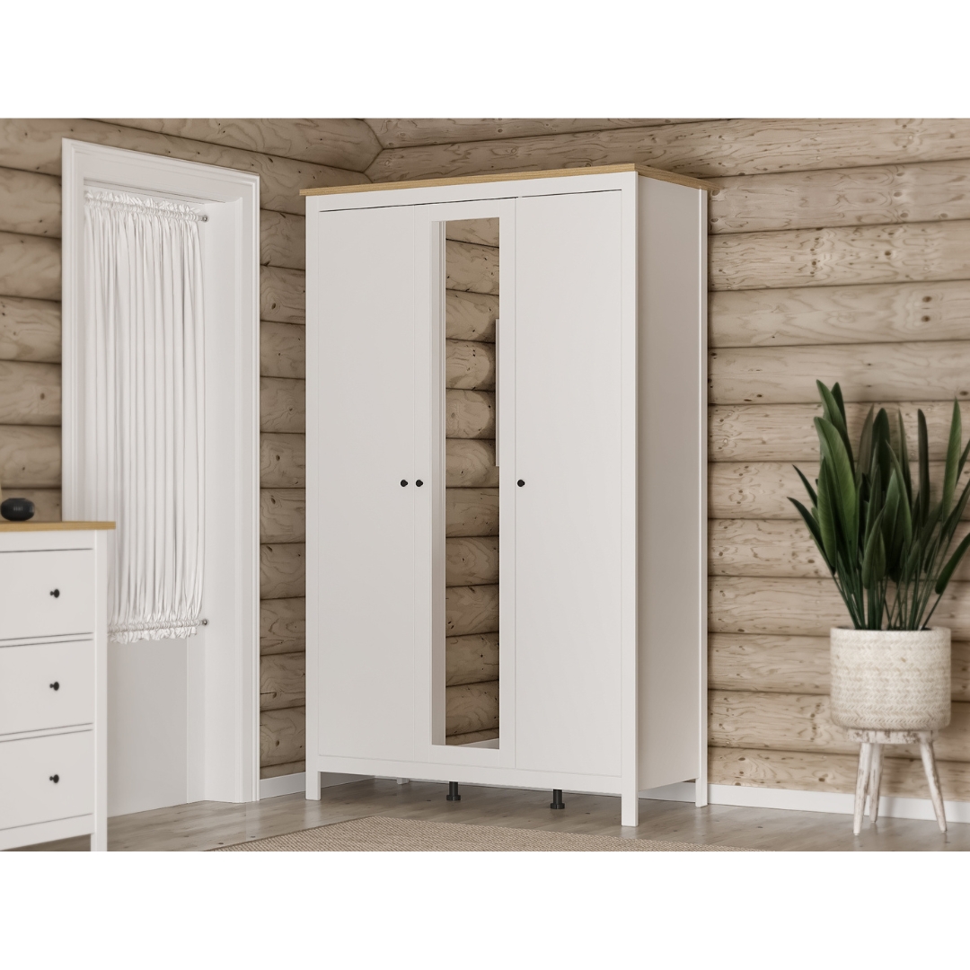 САГА, шкаф платяной 3-дверный, с зеркалом, 132х64х215 см, белый/ясень