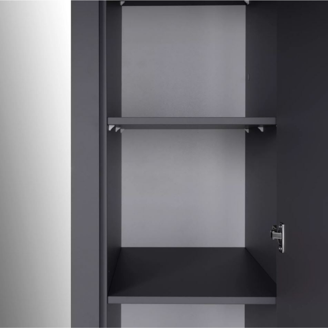 Он оснащен шестью регулируемыми полками, что позволяет гибко организовать пространство внутри шкафа в зависимости от ваших потребностей. Для удобного размещения одежды на плечиках предусмотрена платяная штанга. Одна из дверей шкафа выполнена с зеркальной поверхностью, что добавляет ему практичности и визуально расширяет пространство.