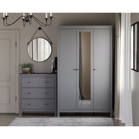 Шкаф распашной САГА, 3 двери, с зеркалом — это функциональное и стильное решение для хранения вещей.