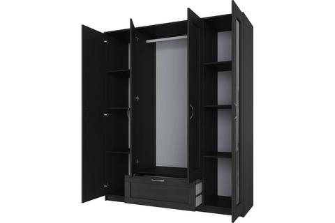 Шкаф оснащен вместительной штангой и полками, что делает его идеальным для хранения платьев и другой одежды. Распашные двери обеспечивают легкий доступ ко всем вещам, а отдельный ящик предоставляет дополнительное пространство для мелочей.
