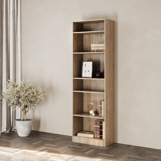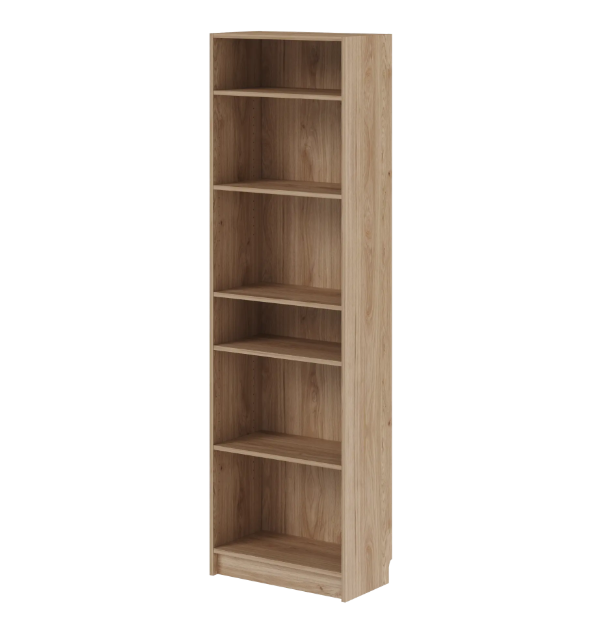 Стеллаж Буккер поможет организовать хранение книг, учебных принадлежностей, предметов быта. Подойдет для спальни или рабочего кабинета. Изготовлен из прочной плиты ЛДСП толщиной 16 мм, сверху отделан гладкой финиш-пленкой цвета «дуб Гикори Джексон».