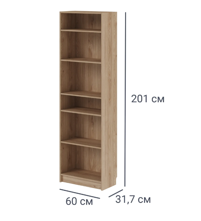 точные размеры стеллажа: 60x201x31.7 см. В комплекте: