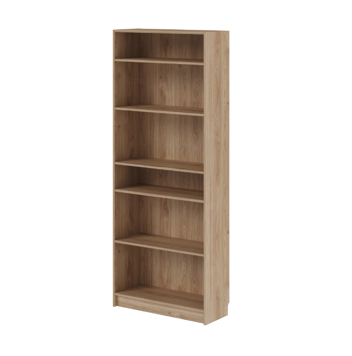 Стеллаж Буккер поможет организовать хранение книг, учебных принадлежностей, предметов быта. Подойдет для спальни или рабочего кабинета. Изготовлен из прочной плиты ЛДСП толщиной 16 мм, сверху отделан гладкой финиш-пленкой цвета «дуб Гикори Джексон».
