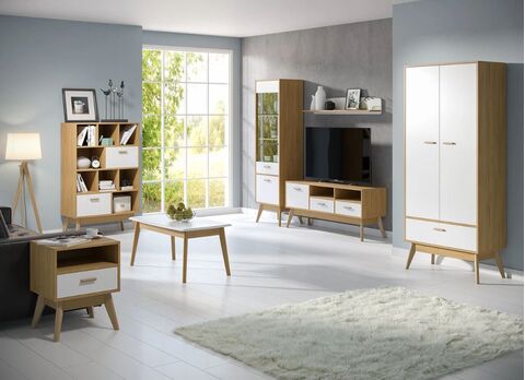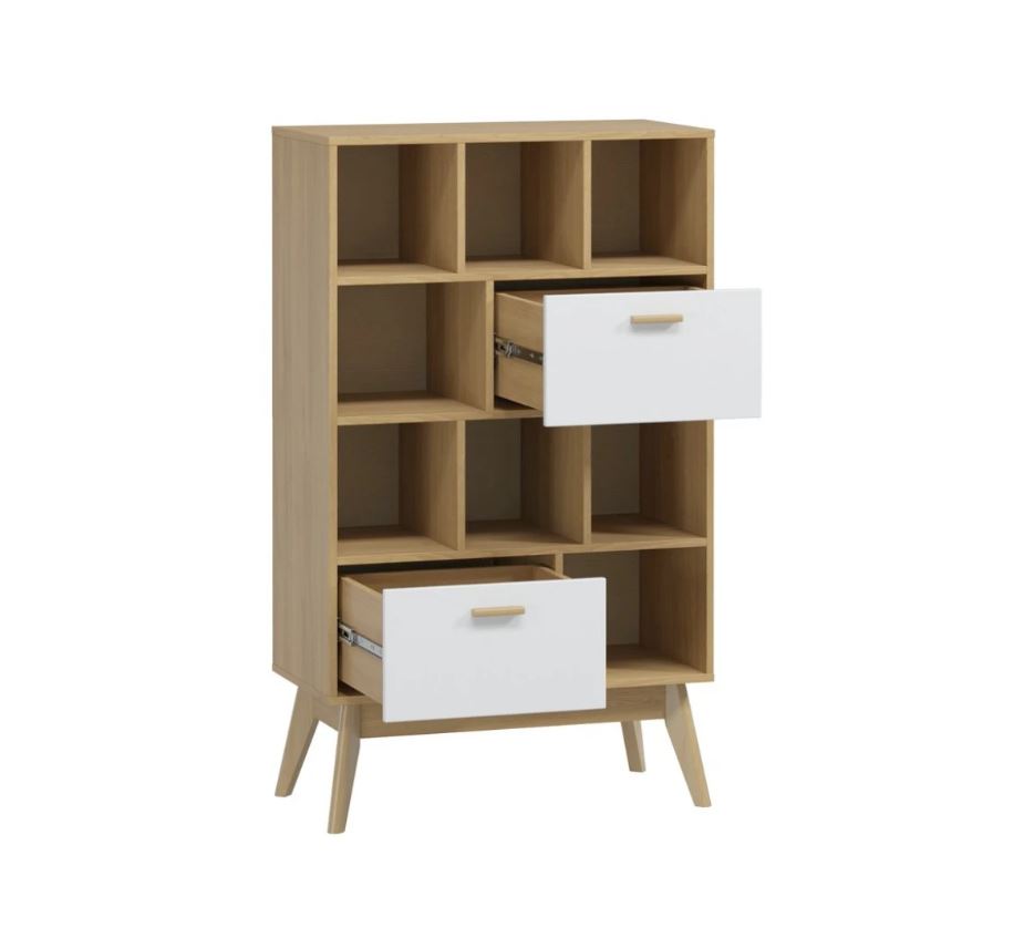 Стеллаж "Калгари", выполненный в скандинавском стиле, решит проблему хранения, позволив определить конкретное место для разных небольших предметов. Внутреннее наполнение модуля состоит из двух выдвижных ящиков и восьми ниш.