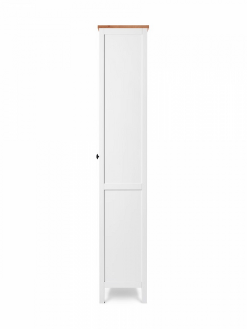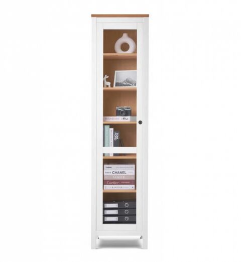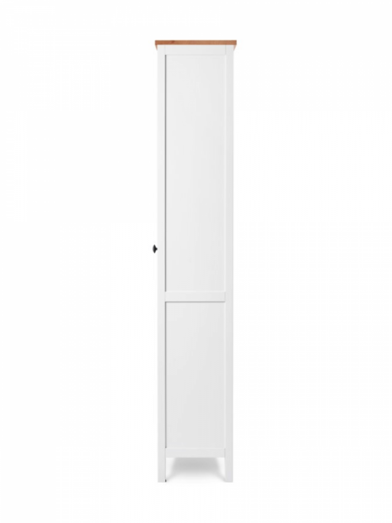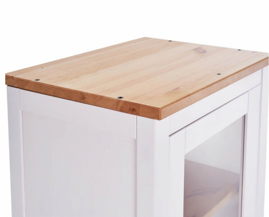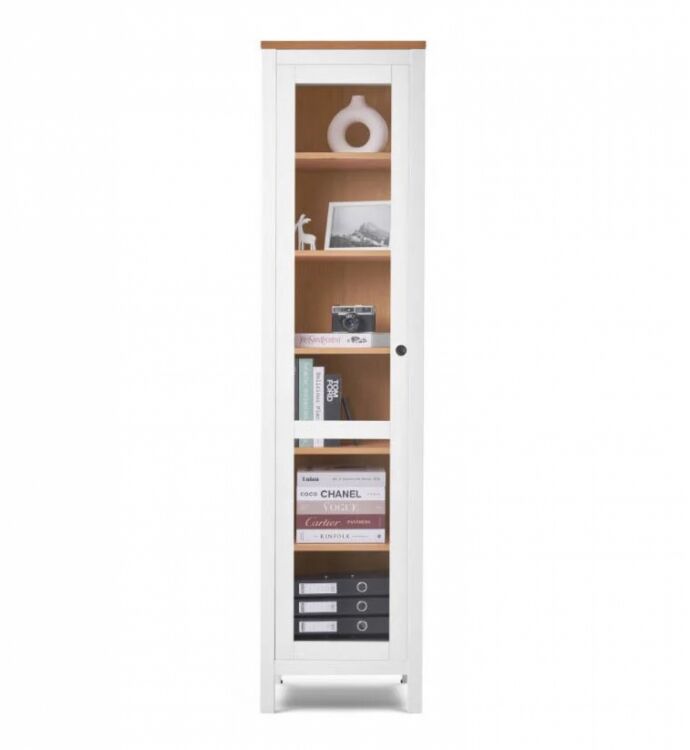Изготовленный из массива сосны, шкаф обладает высокой прочностью и долговечностью. Распашная дверь и одна стеклянная полка придают ему легкость и элегантность. Внутри шкафа располагаются шесть полок, которые позволяют хранить различные предметы, такие как книги, сувениры или даже посуду.