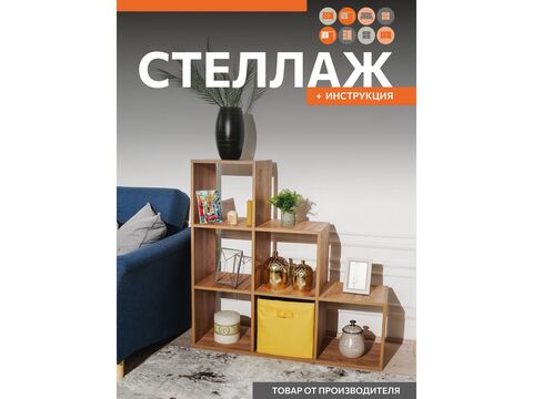 ЛЕСЕНКА, стеллаж, 6 секций (1х2х3), дуб крафт золотой, 105х105х33 см