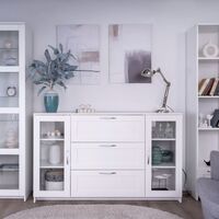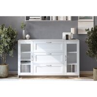 СИРИУС, тумба-витрина, 2 двери со стеклом, 3 ящика, 156х95х41 см, белый