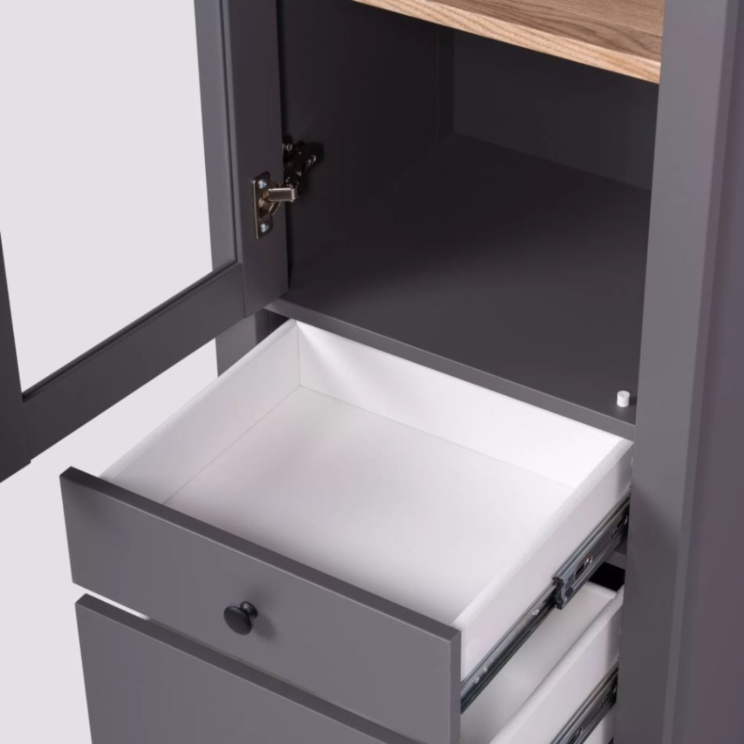 Серия САГА покрыта декоративной пленкой Schattdecor (Германия), оснащена премиальной фурнитурой, бесшумными петлями и направляющими с доводчиком.
