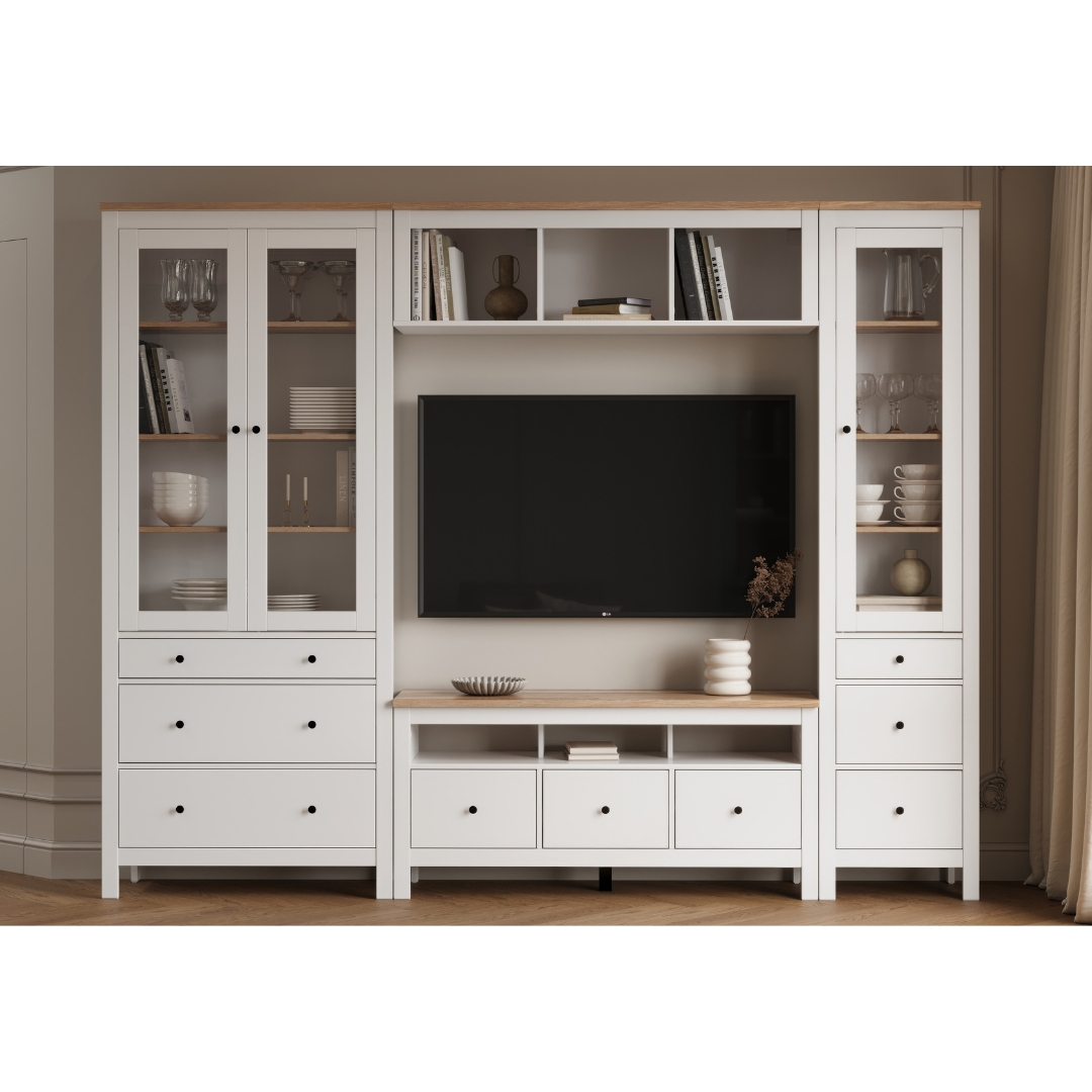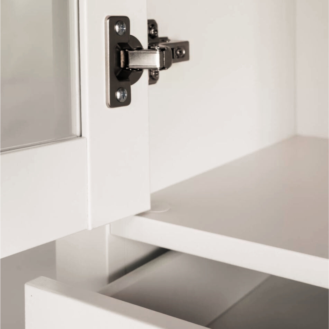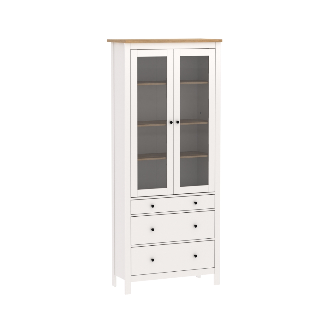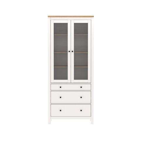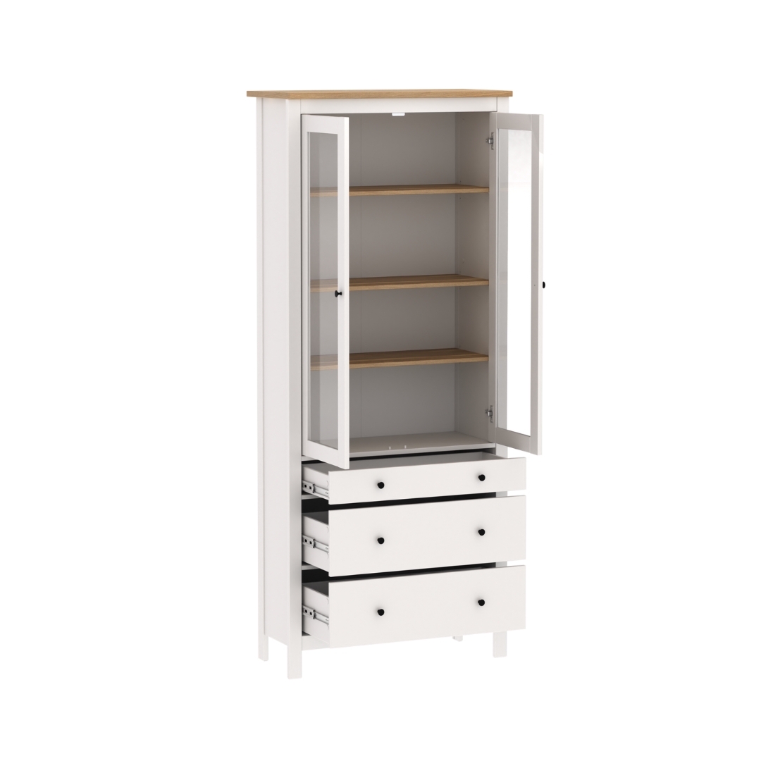 Шкаф-витрина САГА оснащена 3 вместительными полками, которые можно отрегулировать по высоте, а также 3 выдвижными ящиками. Это позволяет гибко организовать пространство для хранения.