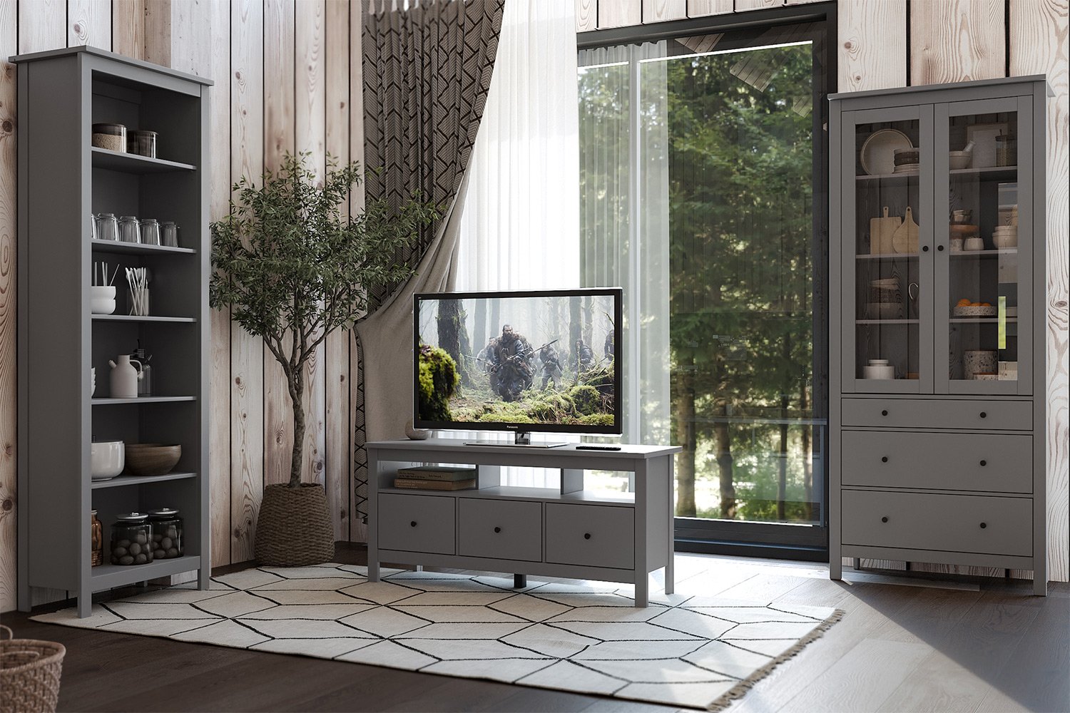 Серия САГА разработана для поклонников загородного стиля жизни — традиционный скандинавский дизайн и простота форм, с отсылкой к минимализму декоративных элементов и деталей. При этом внешний вид мебели не без оснований внушает чувство надежности и долговечности.