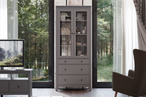 САГА, шкаф-витрина, 91х42х215 см, серый, М3