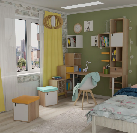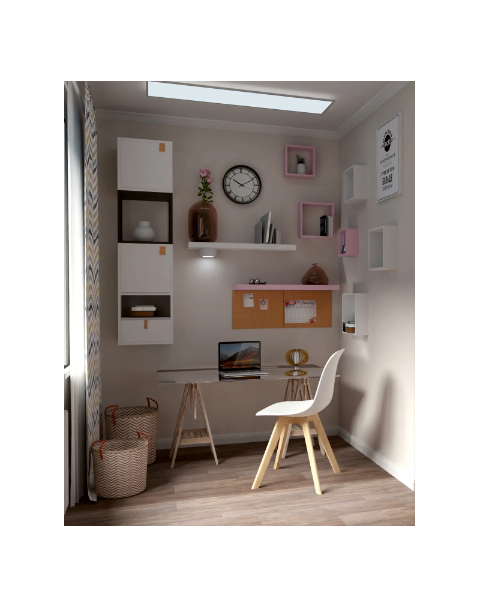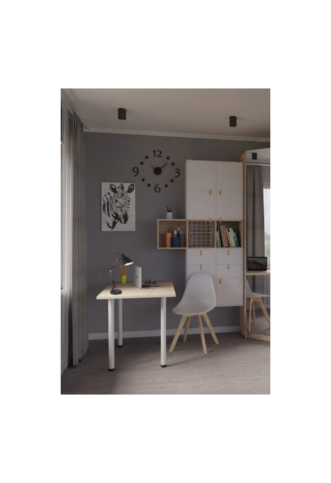 Выполнен из плит ДСП толщиной 16 мм. Материал отличается высокой прочностью и безопасностью: уровень выделения формальдегида соответствует классу Е1, поэтому продукт можно использовать без ограничений. Для придания визуальной привлекательности каркас покрыт декоративным листом с гладкой поверхностью.