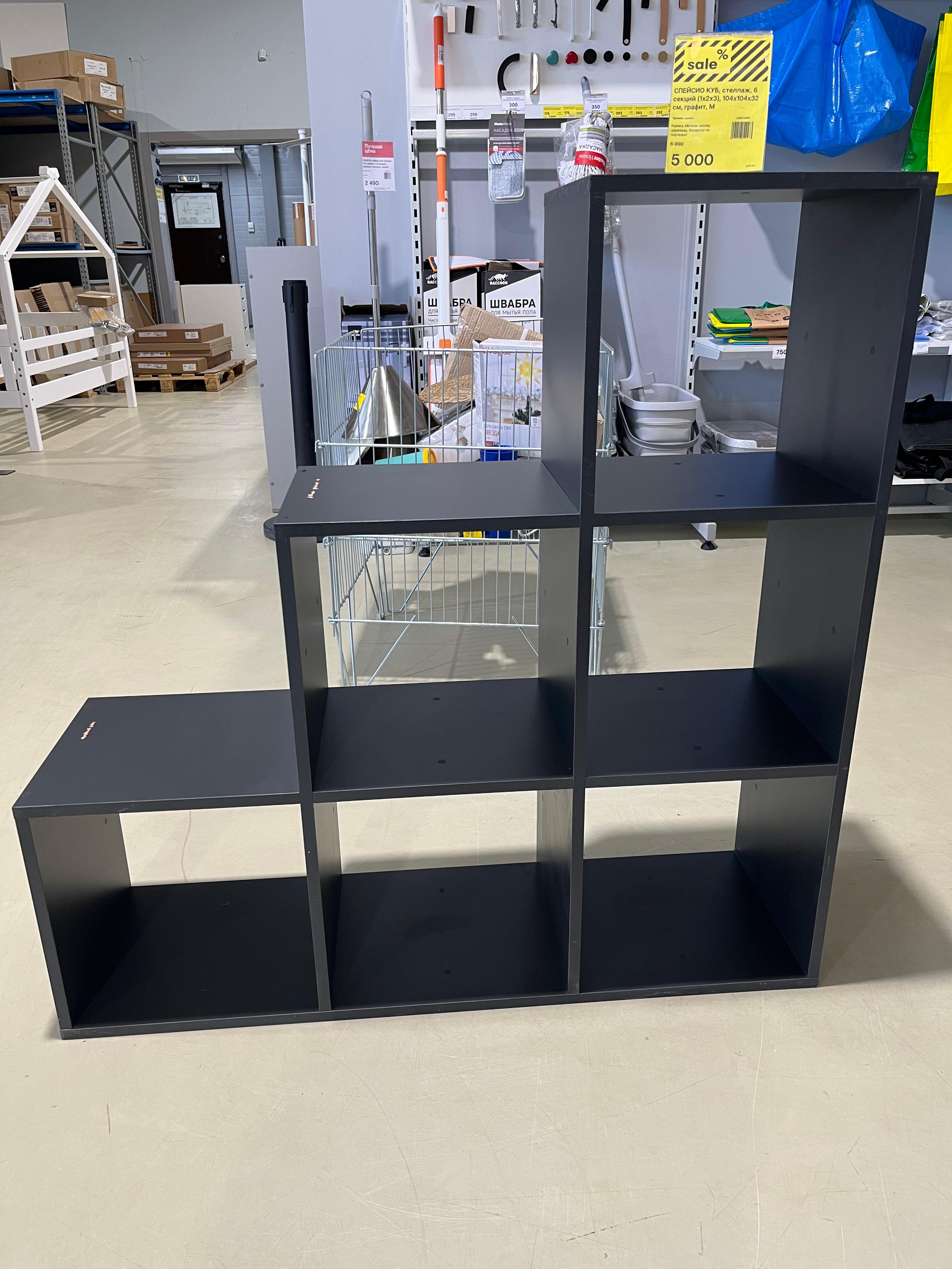 Стеллаж «Куб» на 6 секций — это основной элемент модульной системы хранения. Для максимально эффективного использования внутреннего объема может быть дополнен выдвижными ящиками, коробами, дополнительными полками, дверцами. Стеллаж изготовлен из ЛДСП толщиной 16 мм с гладким покрытием. Цвет — «графит». Ширина конструкции — 104,8 см, высота — 104,9 см, глубина — 31,7 см. Каждая полка рассчитана на нагрузку в 5 кг. Страна производства — Россия.